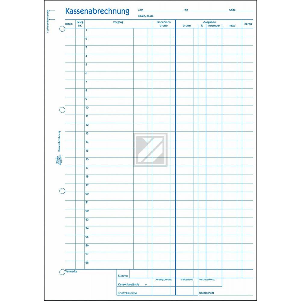 AZ Kassenabrechnung 428 A4 Hoch weiß/gelb Inh.2x50 Blatt Avery Zweckform