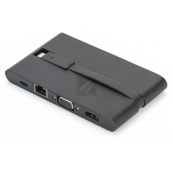 DIGITUS Universal Travel Docking Station USB 3.1 Type C 4K HDMI VGA 2x USB-C 2x USB3.0 RJ45 MicroSD SD/MMC schwarz