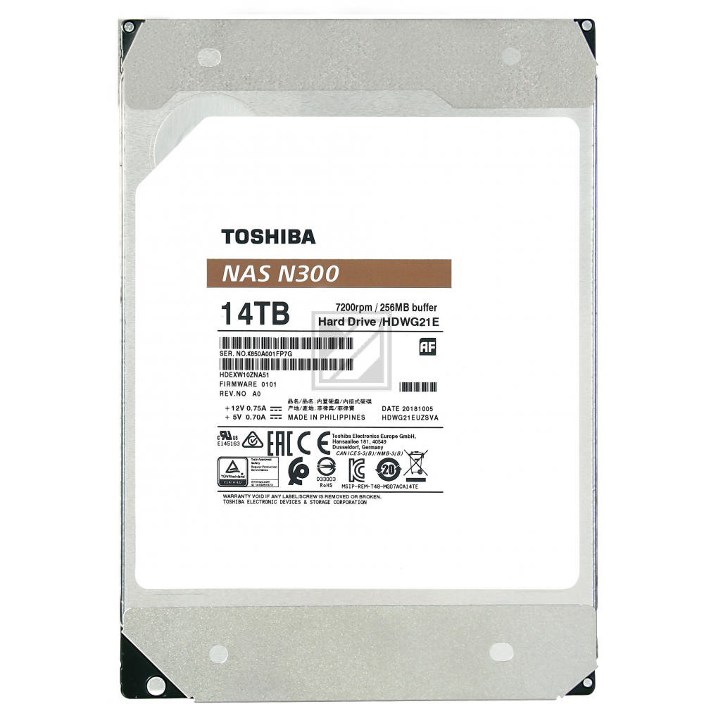 TOSHIBA HDD N300 NAS 14TB HDWG21EUZ internal, SATA 3.5 inch BULK